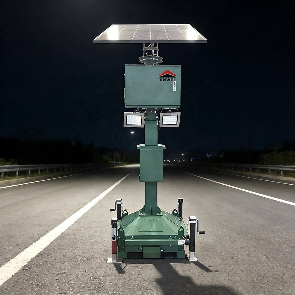 Torre di Illuminazione Mobile con Pannelli Solari, Fari LED Solari per Illuminazione Stradale e Costruzioni