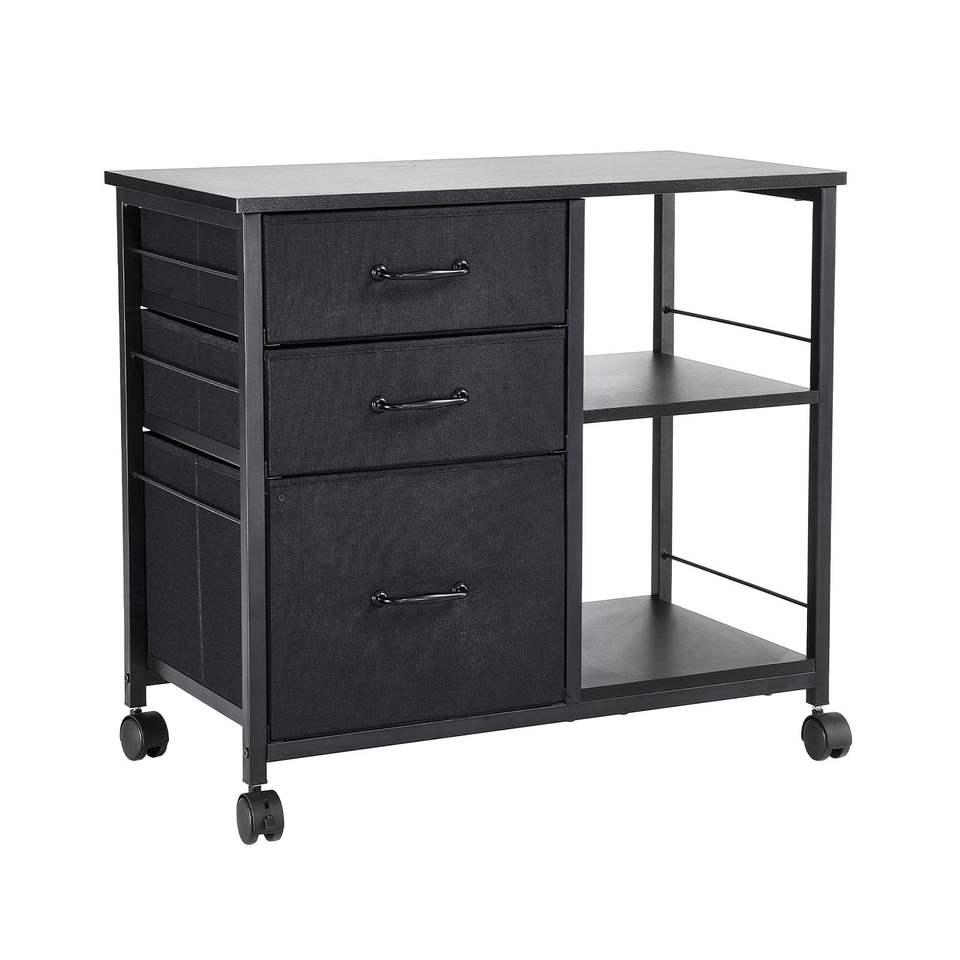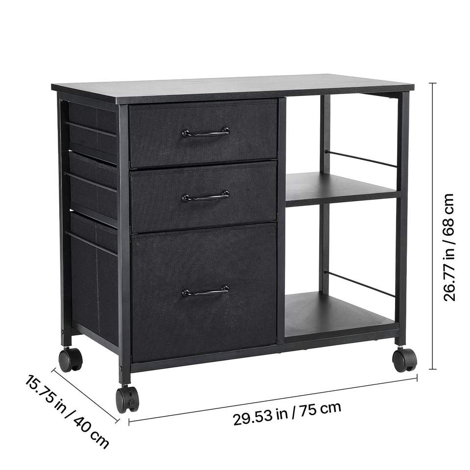 Armadietto Portadocumenti Mobile in Metallo con 3 Cassetti in Tessuto e 2 Ripiani Aperti, Armadietti Verticali in Legno per Archiviazione