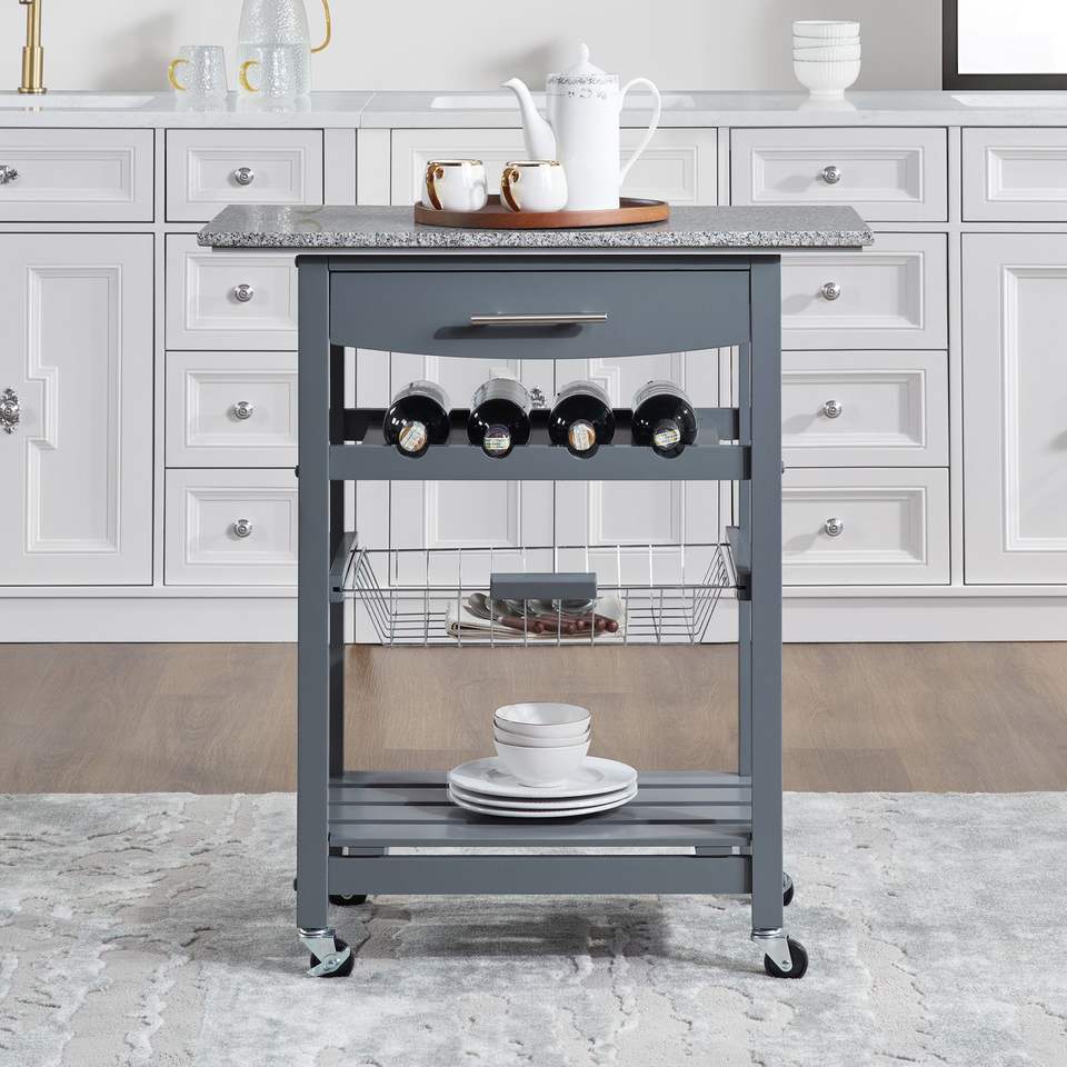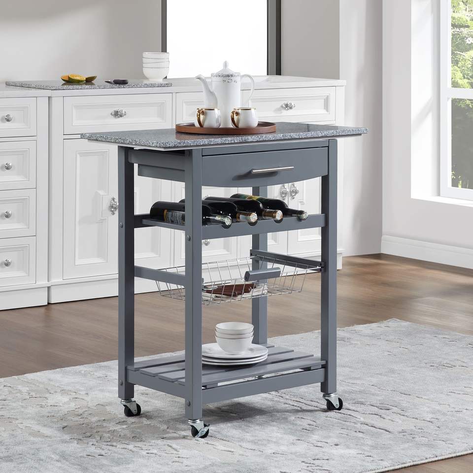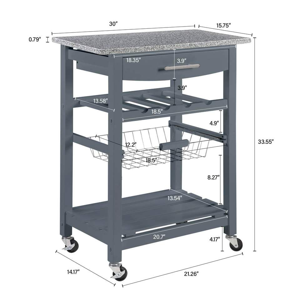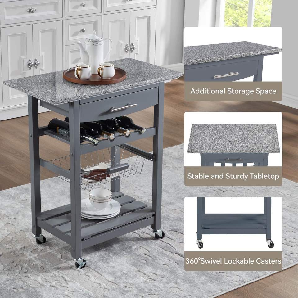 Carrello da Cucina Mobile con Isola, Cassetto e Cesto Portaoggetti Estraibile in Rete