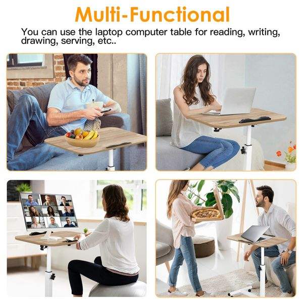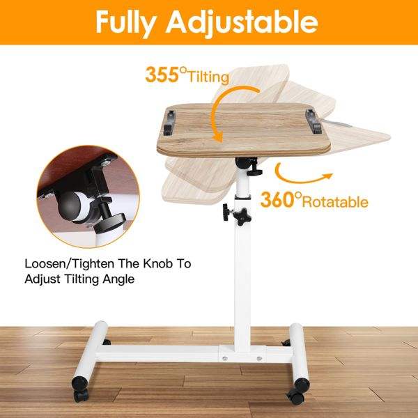 Mobile Standing Desk 90-Degree Tiltable Portable Computer Cart Wheels Foldable Wooden Overbed Bedside Table for Home Office