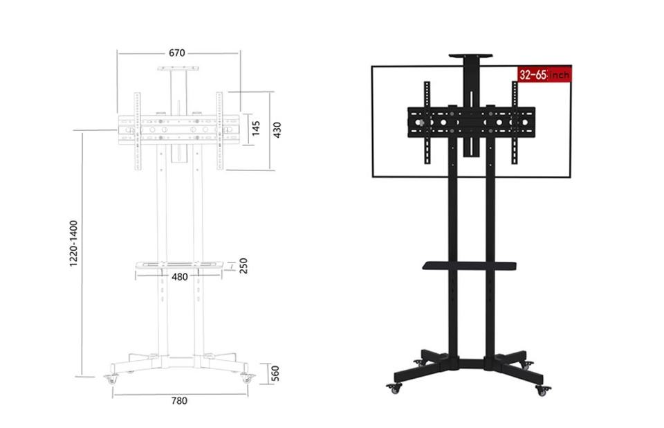 Mobile TV Floor Stand with Wheel Integrated Display Screen, Movable Trolley TV Stand for Living Room and Bedroom