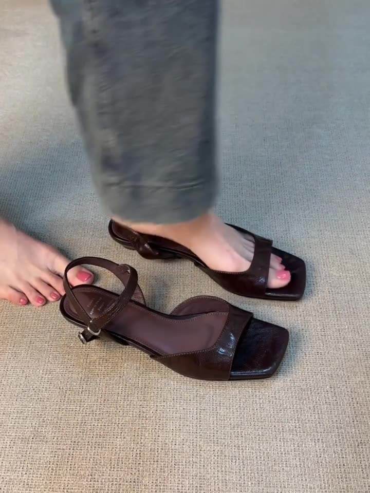 Versione mocassino retrò semplici sandali con fibbia in morbida pelle nuove versatili scarpe romane traforate con tacco basso