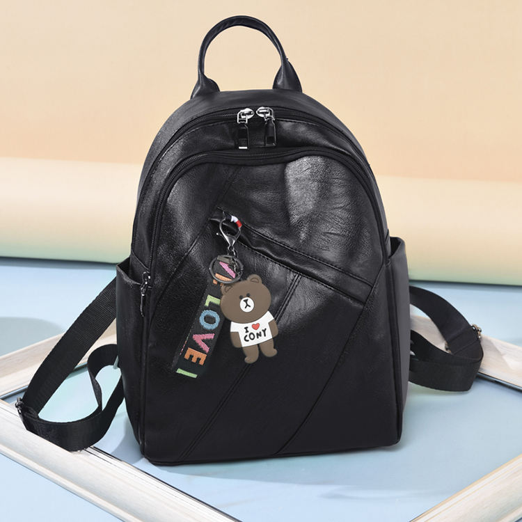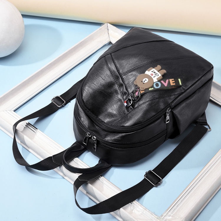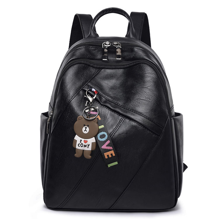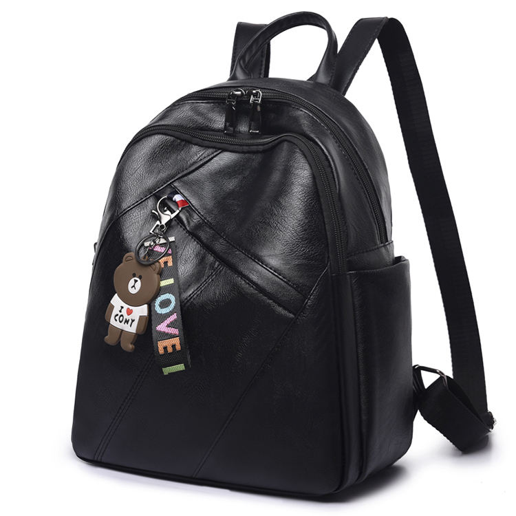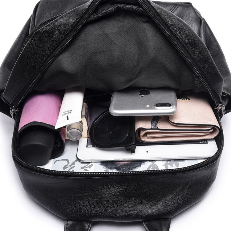 Mochilas Negras Large Black Rucksack Bag Back Pack Purse Ladies Leather Backpack Women