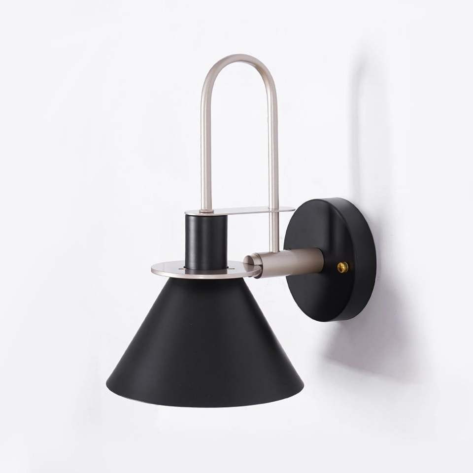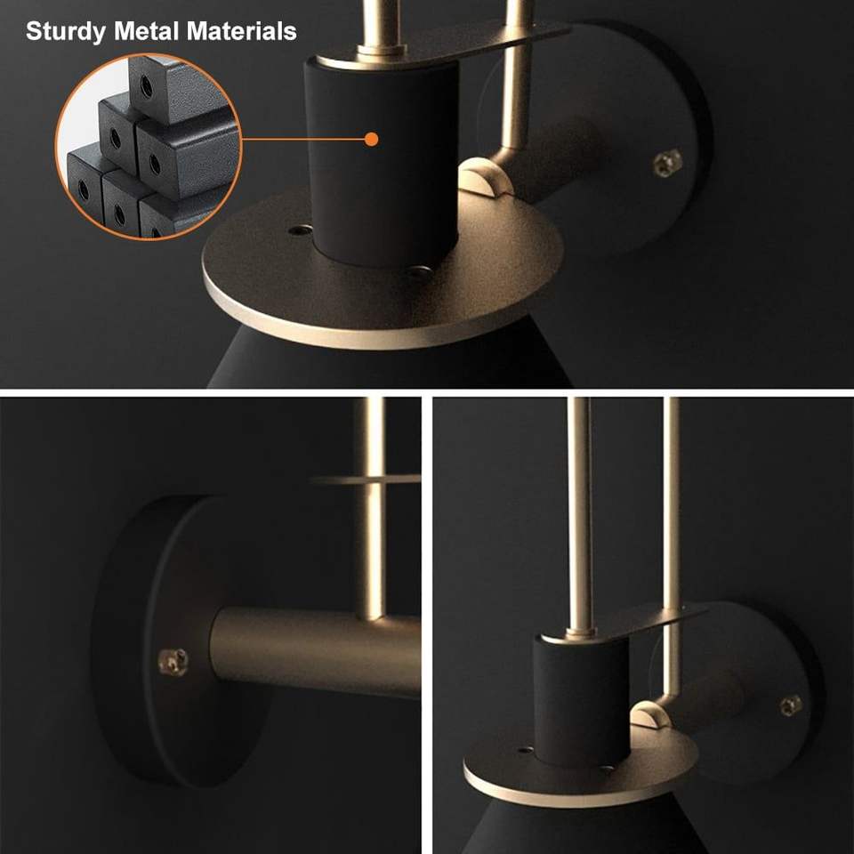 Modern 1-Light Indoor Wall Sconce with Black Metal Tapered Shade Cone Design Wall Lamp