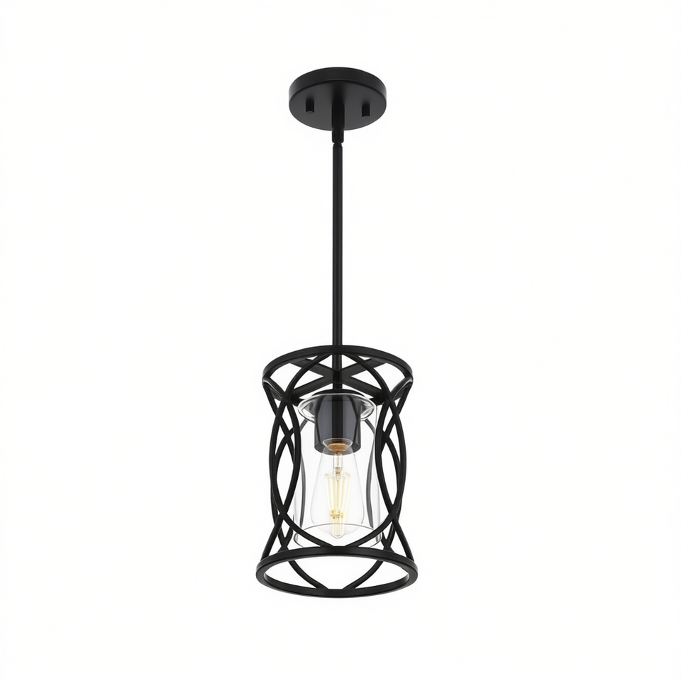 Modern 1-Light Industrial Pendant Light Black Metal Cage Clear Glass Shade For Dining Room Indoor Lighting