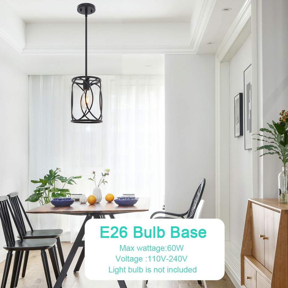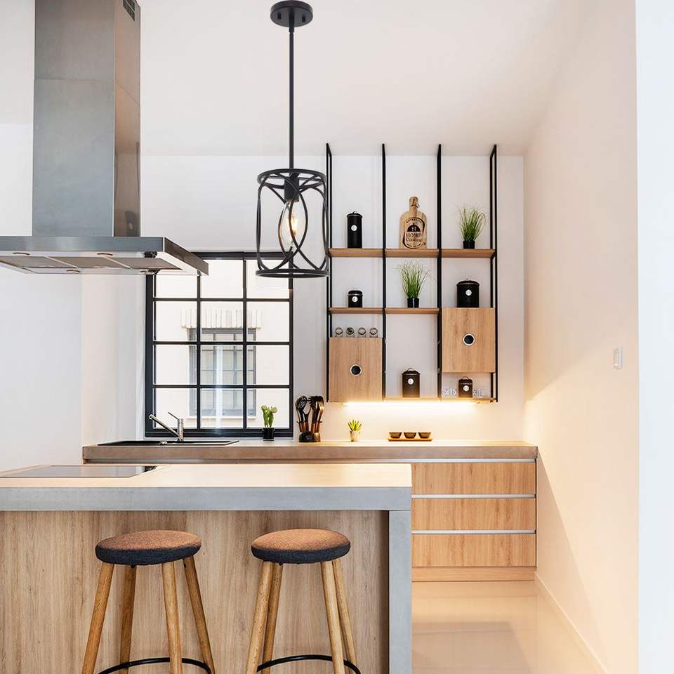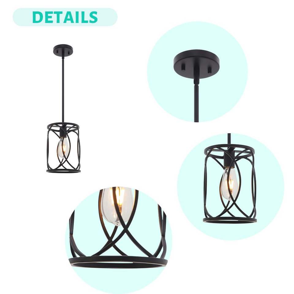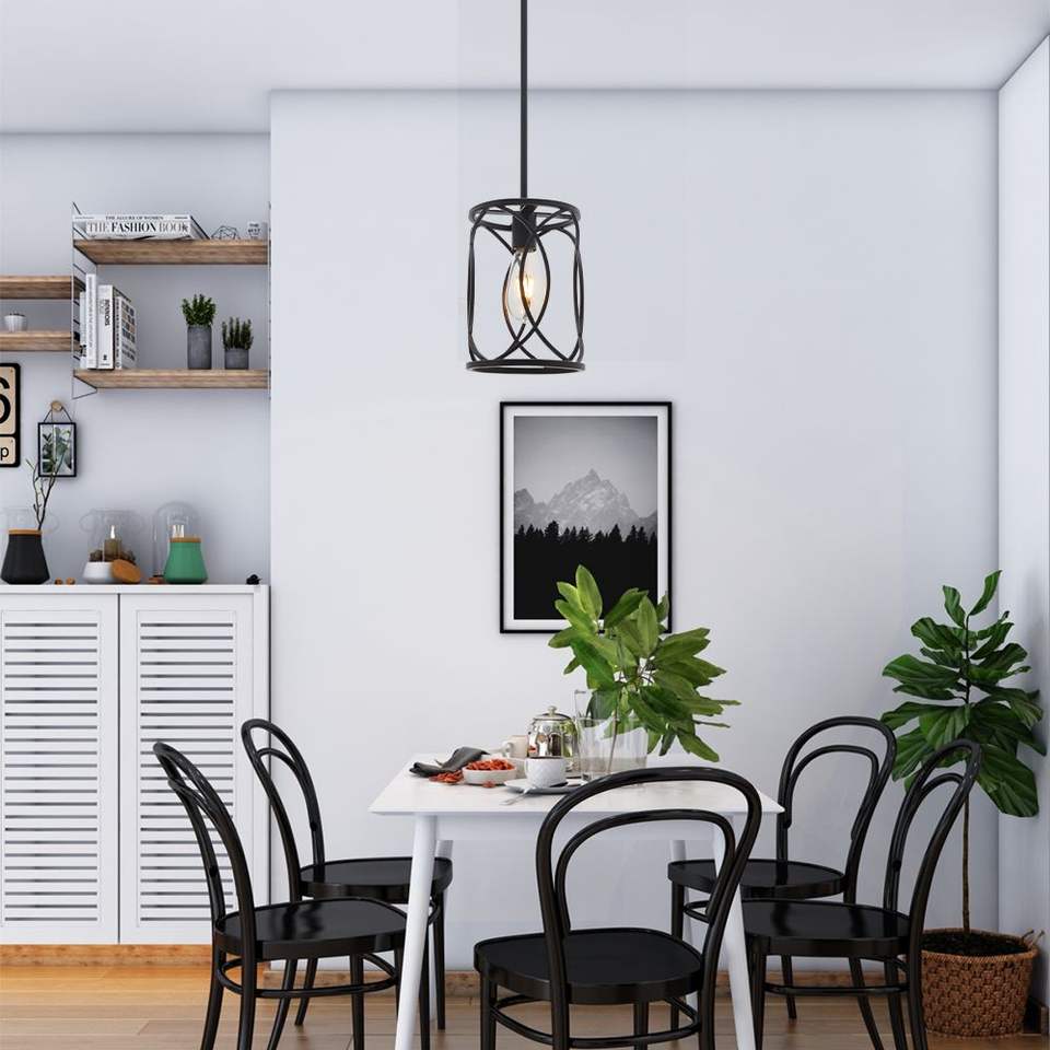 Lampadario Industriale Moderno a 1 Luce, Gabbia in Metallo Nero, Lampada a Sospensione per Isola Cucina, Illuminazione da Soffitto per Interni