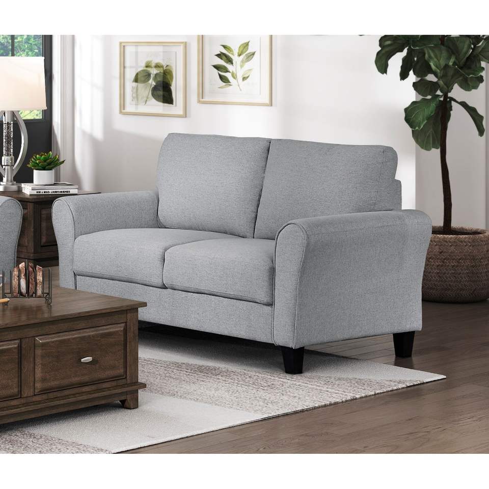 Modern 1-Piece Loveseat with Rounded Arms Attached Cushions Textured Fabric Upholstered Transitional Style Living Room Furniture