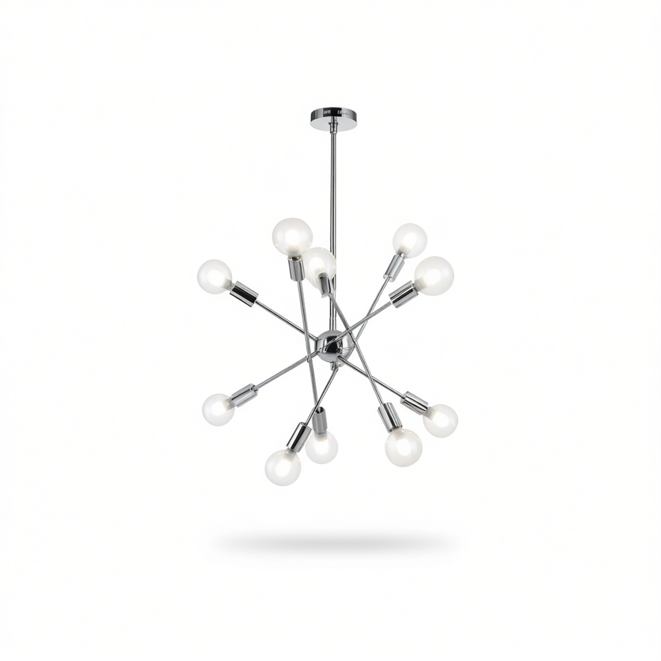 Lampadario Moderno Sputnik a 10 Luci con Bracci Regolabili Cromati, Illuminazione a Sospensione per Soggiorno