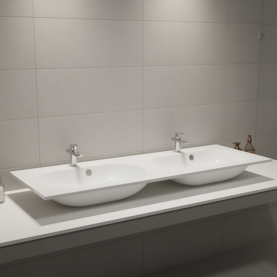 Lavabo da Appoggio Moderno in Ceramica da 120 cm con Doppia Vasca e Forma Ovale