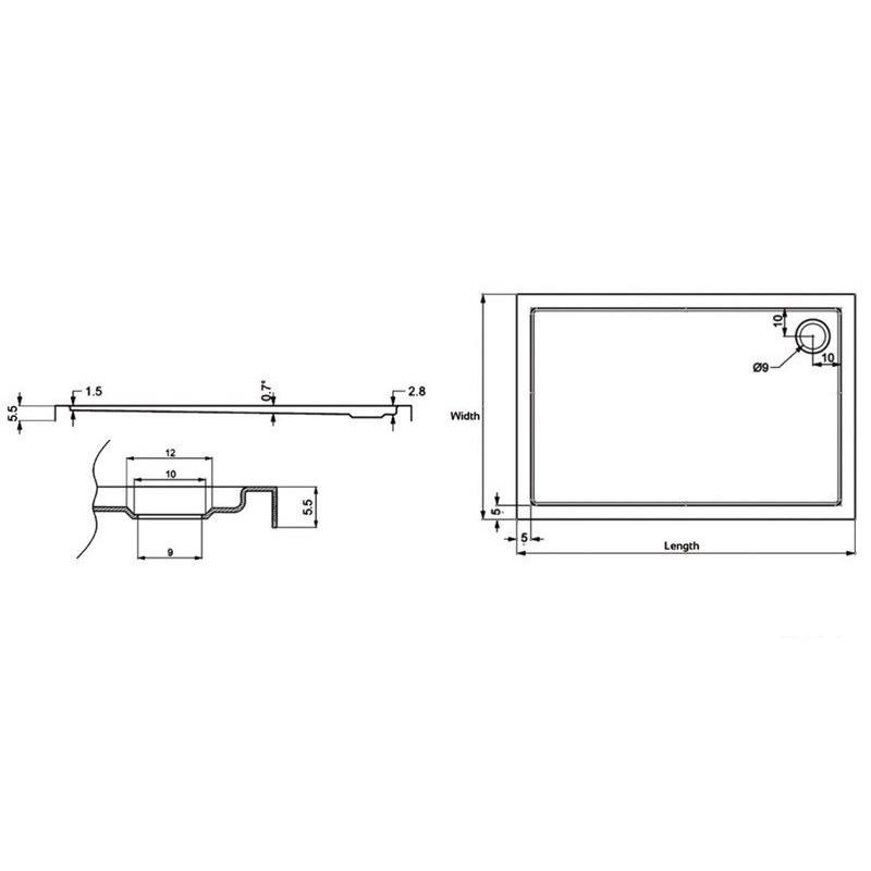 Modern 150x80 Ultra-Slim Acrylic Kamalu Shower Tray Waterproof for Bathroom or Hotel Use