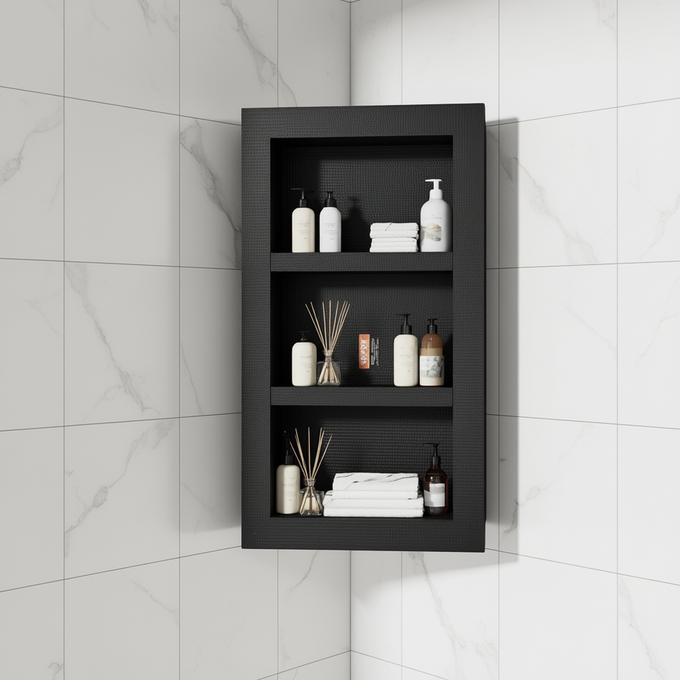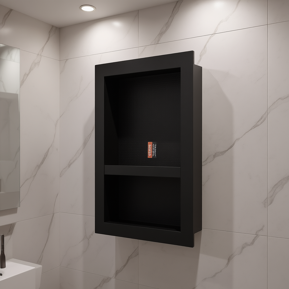 Nicchia Doccia Nera 16 X 24 Pollici con Doppio Ripiano, Organizzatore da Bagno Incassato, Angolo Quadrato Impermeabile