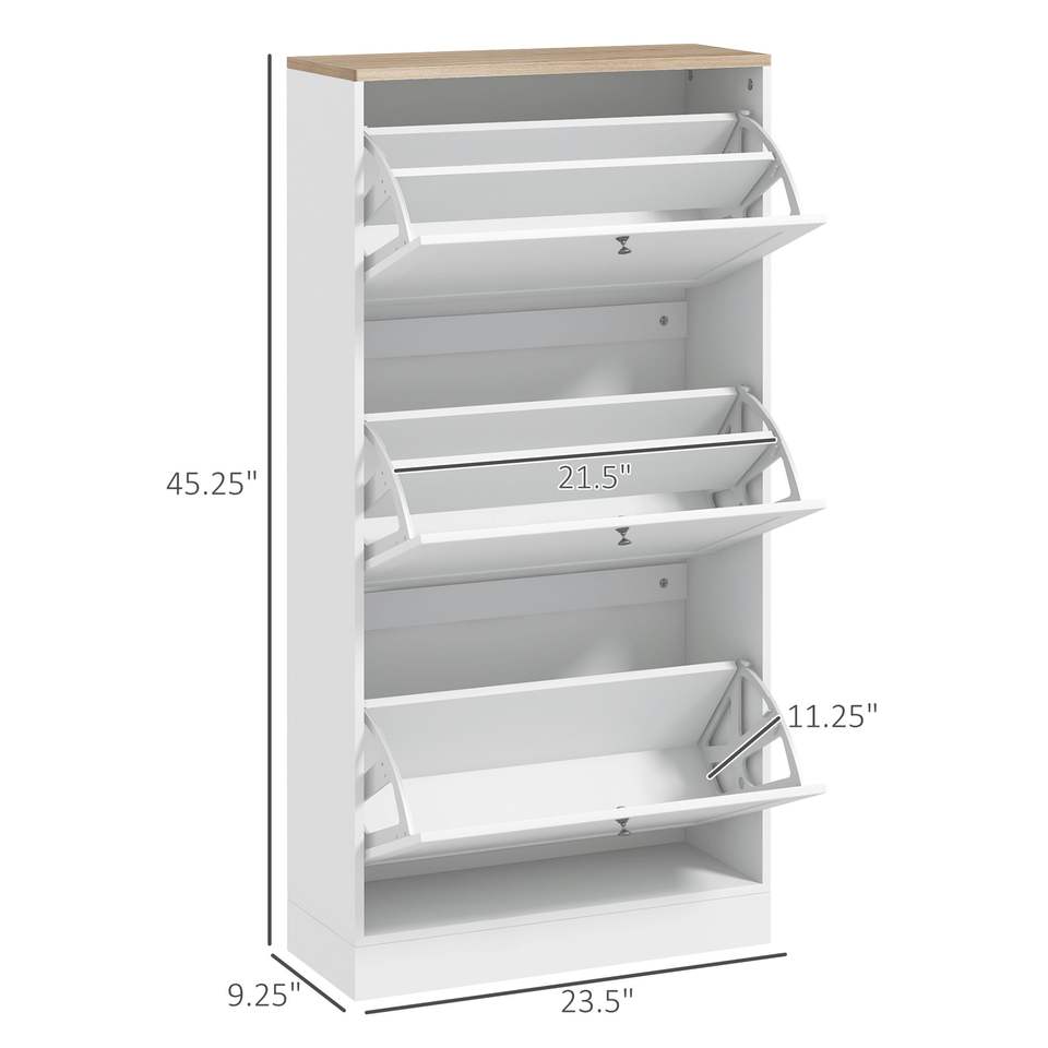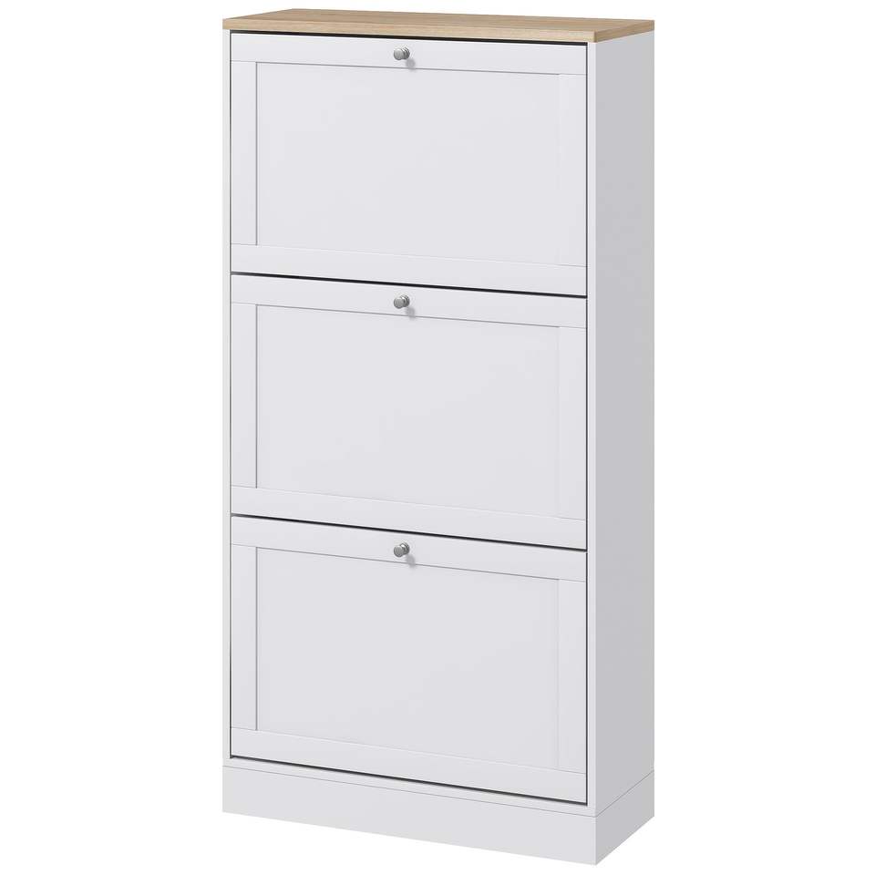 Modern 18-Pair White Shoe Storage Cabinet with 3 Flip Drawers and Adjustable Shelves for Organising Your Shoe Collection