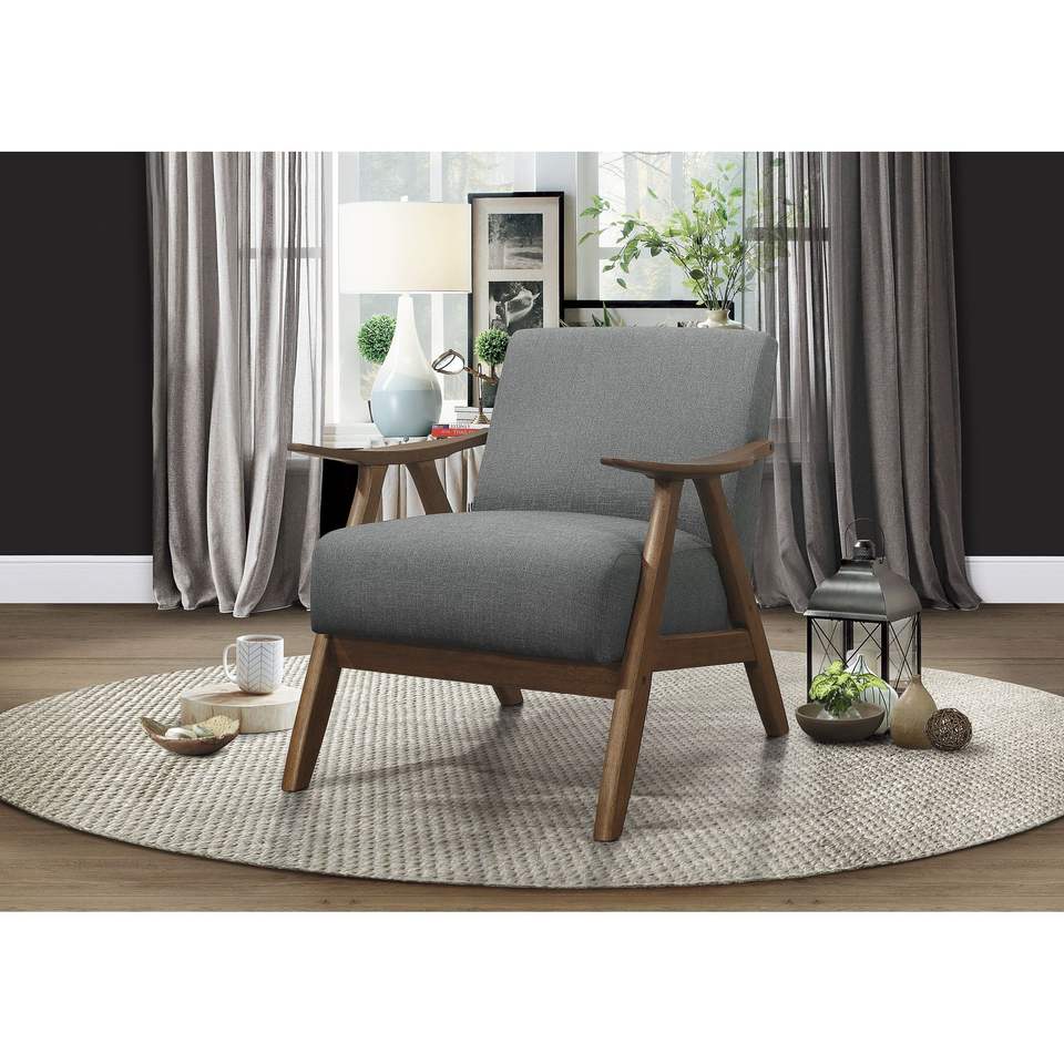 Poltrona Moderna da Soggiorno in Tessuto Grigio con Finitura in Legno di Noce, Cuscino per Schienale e Seduta, Arredamento per la Casa