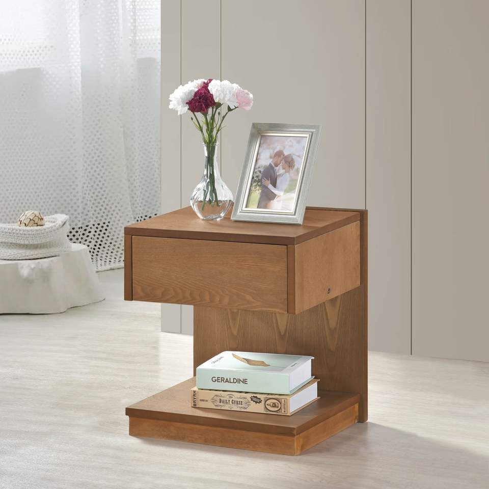 Tavolino Moderno in Legno Marrone con Cassetto, Ripiano Aperto e Porta USB per Soggiorno