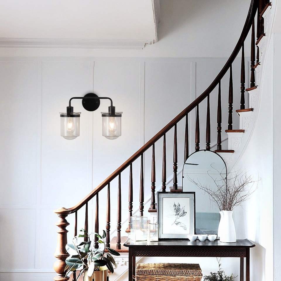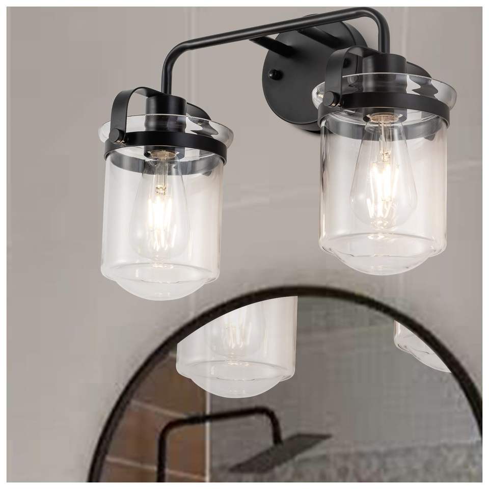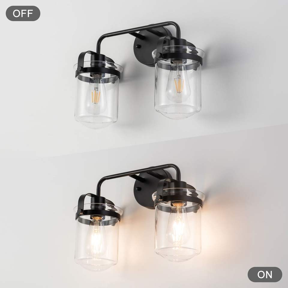 Applique da Interno Moderna a 2 Luci con Paralume in Vetro Trasparente per Bagno, Soggiorno, Camera da Letto, Cucina
