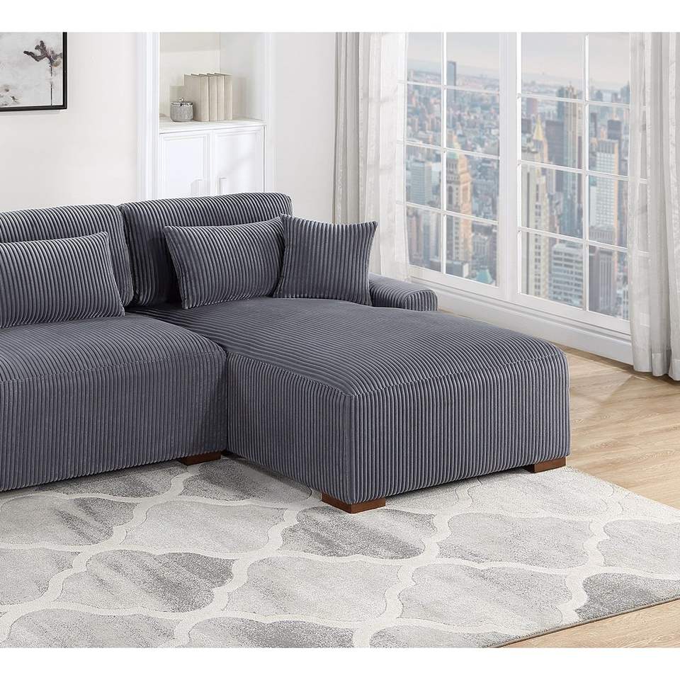 Divano Sezionale Moderno a 2 Pezzi XL in Tessuto Corduroy Felpato Grigio Scuro per Soggiorno - Divano LAF con Chaise Longue RAF