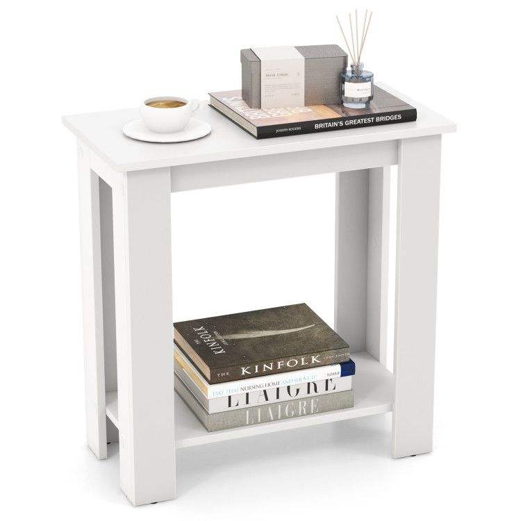 Comodino Moderno a 2 Ripiani con Mensola Portaoggetti, Tavolino Compatto Contemporaneo