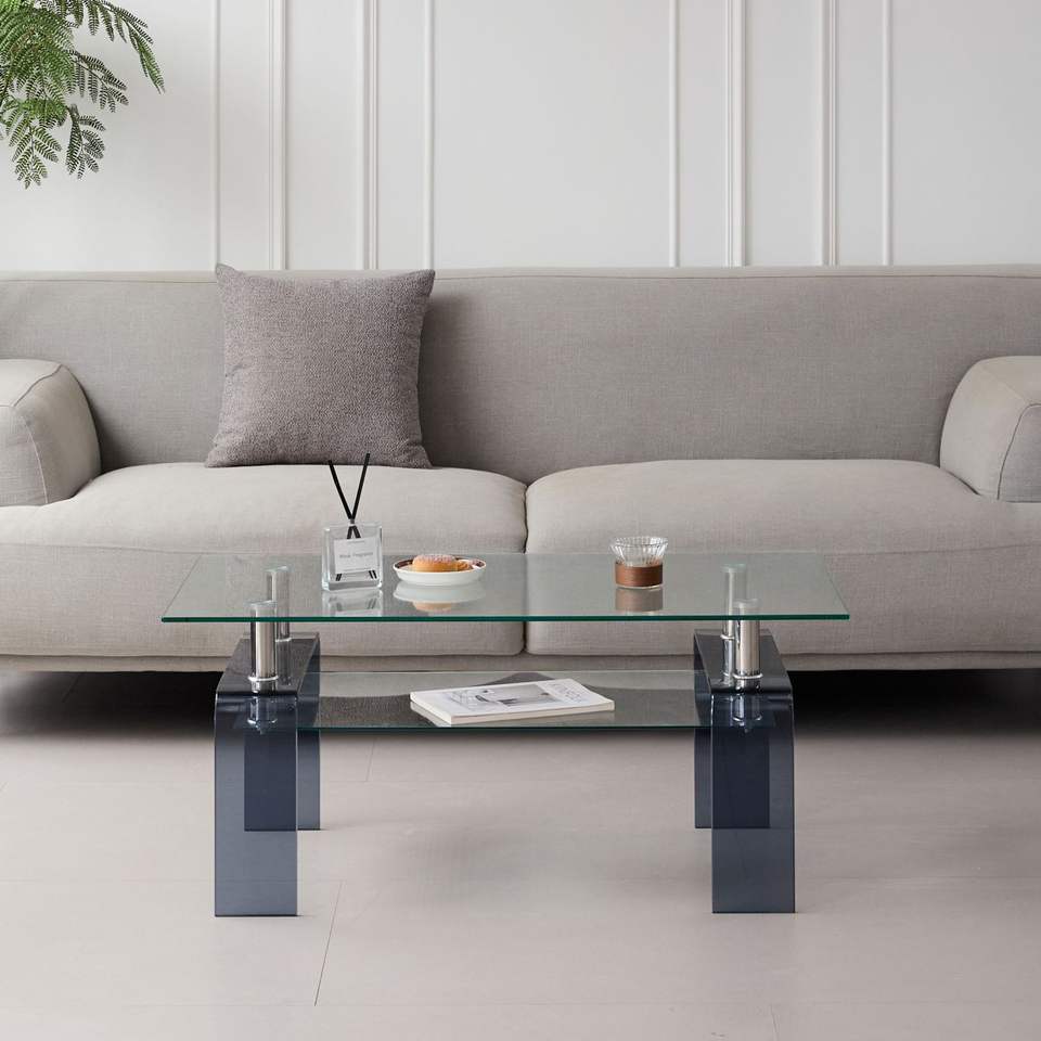 Modern 2-Tier Storage Center Coffee Table with Smoke Legs Tempered Glass Design for Living Room