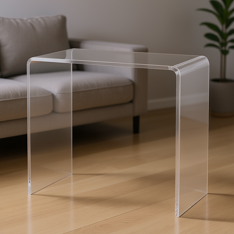 Modern Clear Acrylic End Table 21x12x21 Inches Rounded Edges Waterfall Design For Small Spaces Coffee Table Living Room