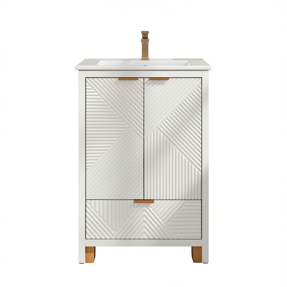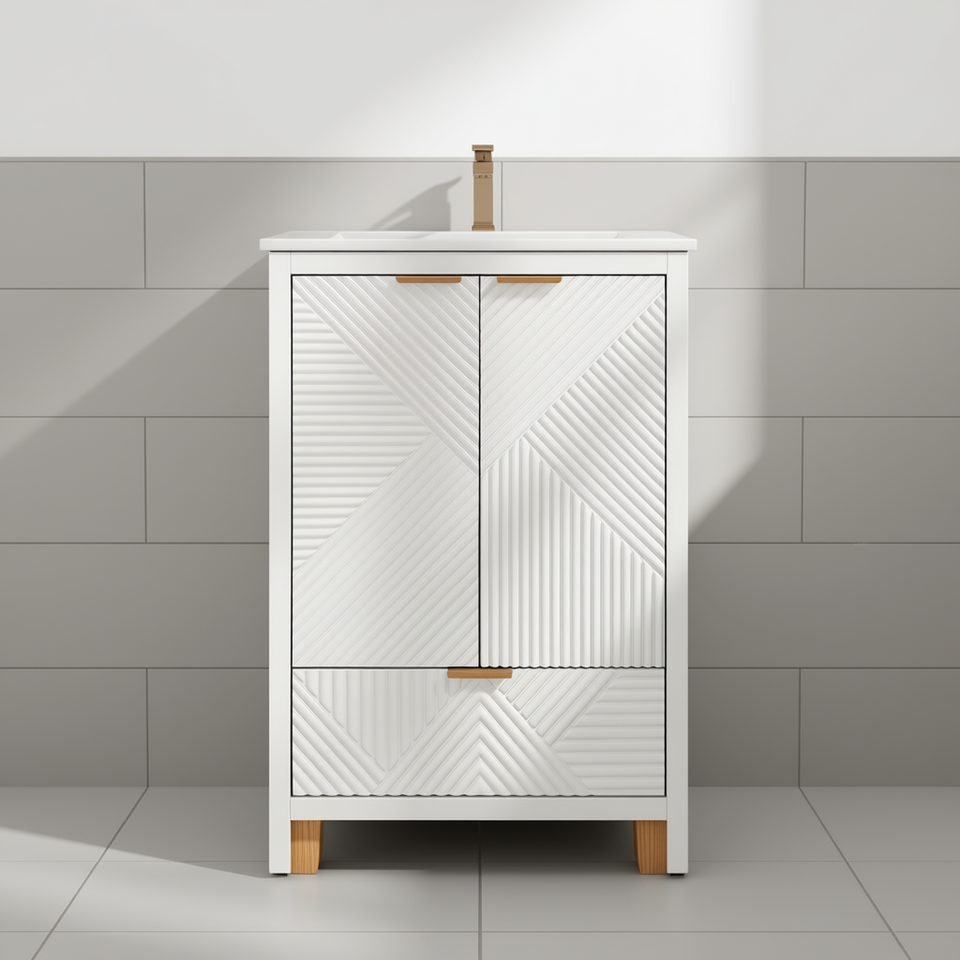 Modern 24-Inch Bathroom Vanity Sink Combo White Textured Door Panels Soft Close Hinges Pine Legs