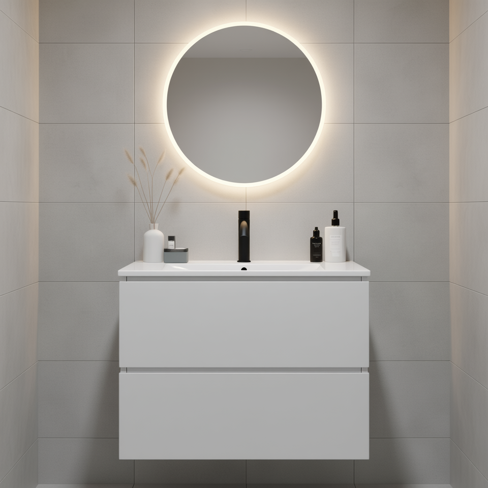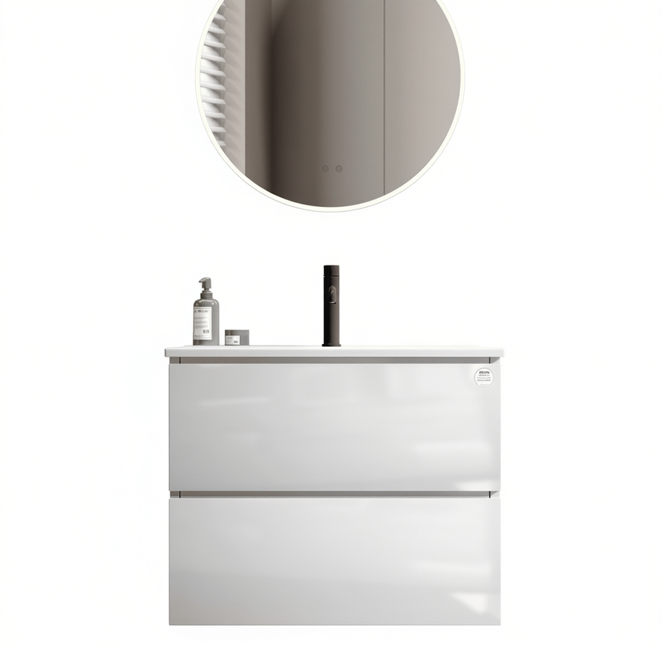 Mobile Bagno Moderno da Parete 24 Pollici Bianco Lucido con Lavabo in Ceramica, Foro Singolo per Rubinetto, Ampio Spazio Contenitivo, Preassemblato