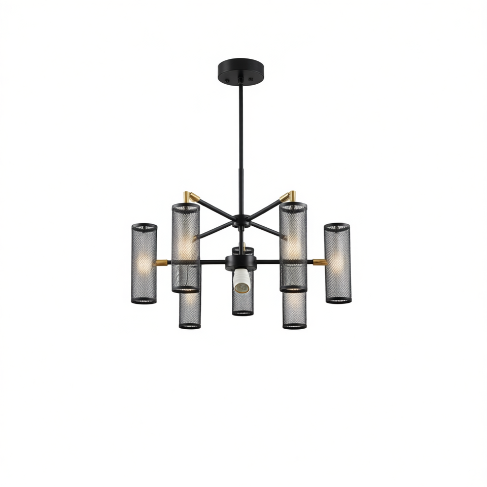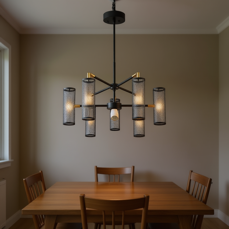 Modern 25 Inch 3 Light Black Iron Pendant Chandelier Cylindrical Mesh Shades E26 Base Dining Room Lighting