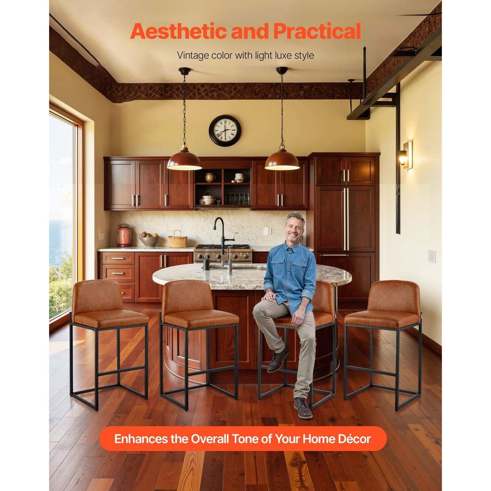 Moderno da 27 pollici altezza da banco in pelle PU Set di sgabelli da Bar facile montaggio senza braccioli in metallo gambe marrone per cucina sala da pranzo Bar
