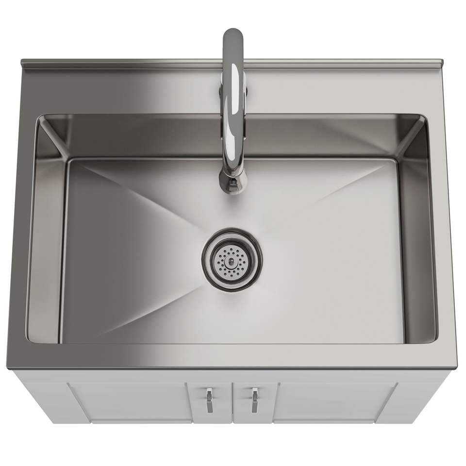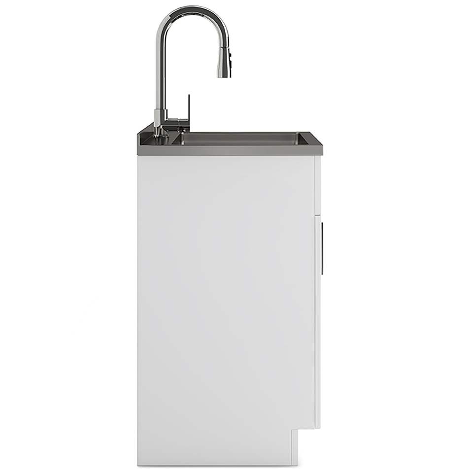 Mobile Lavanderia Moderno da 28 Pollici con Rubinetto e Lavello in Acciaio Inox, Attrezzatura per Lavaggio Bianca