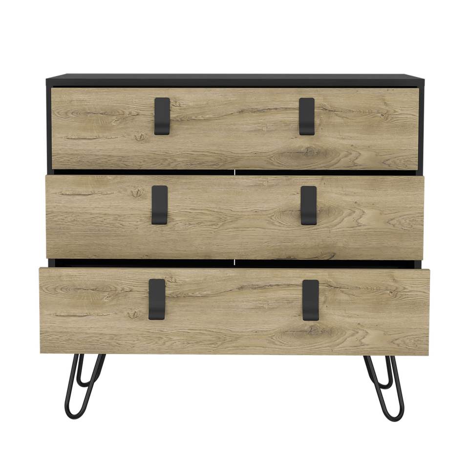 Comò moderno 29 \ "H con cassettiera a 3 cassetti nero/Macadamia con gambe e accenti in metallo