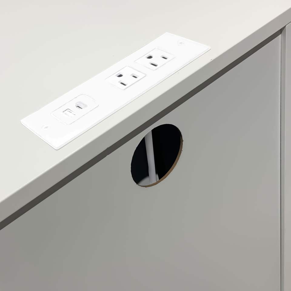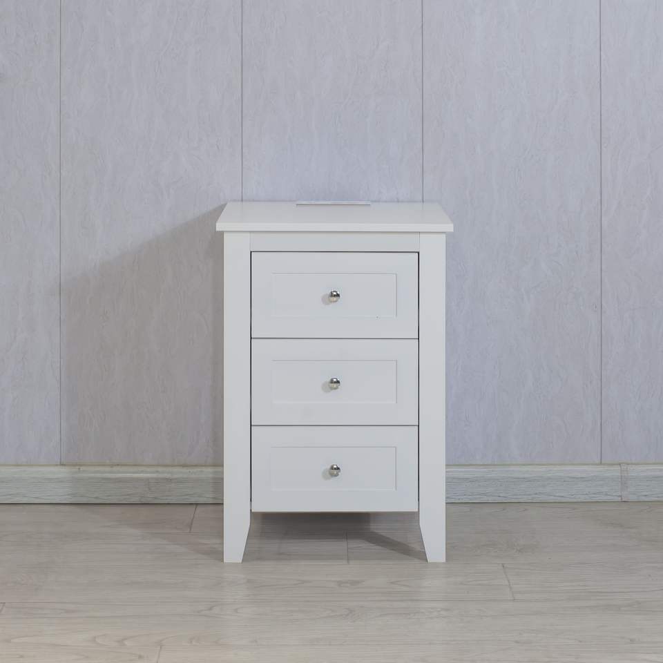 Comodino Moderno Bianco a 3 Cassetti con Stazione di Ricarica, Tavolino da Letto in Legno con Porte USB e Prese di Corrente