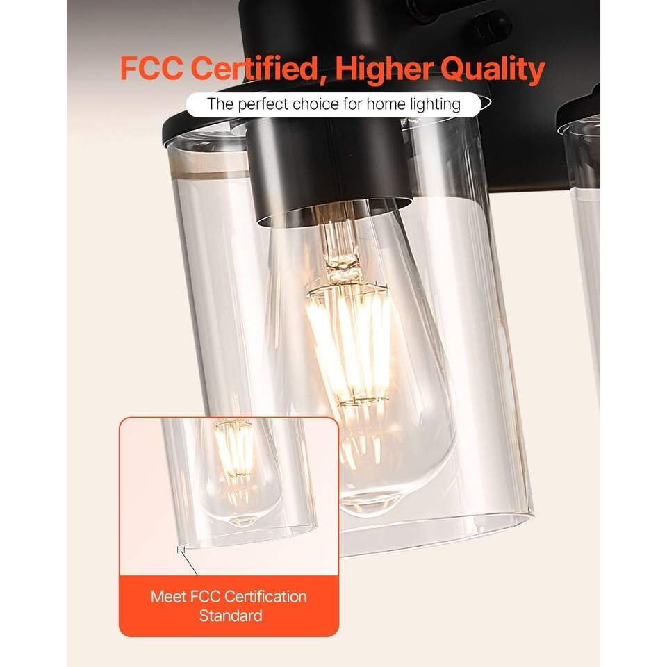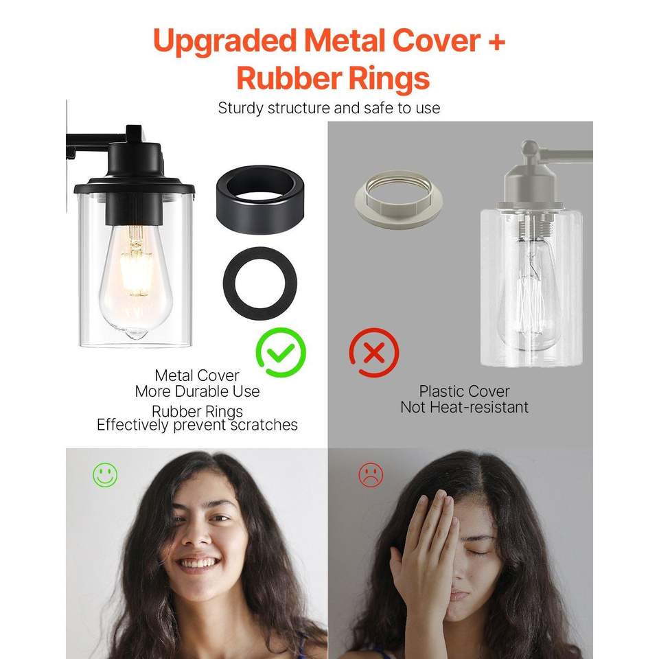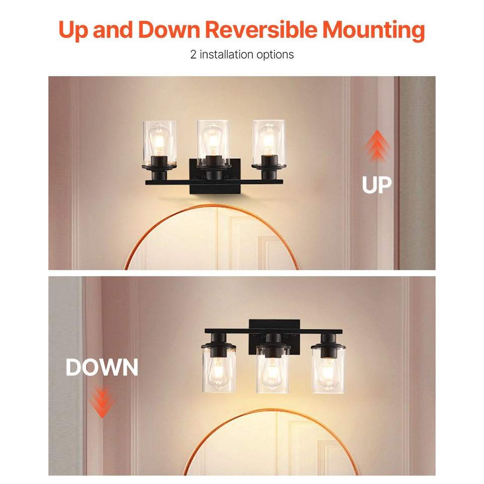 Lampada da Parete Moderna a 3 Luci per Bagno con Paralume in Vetro Trasparente E26, Applique Moderna per Specchio da Bagno