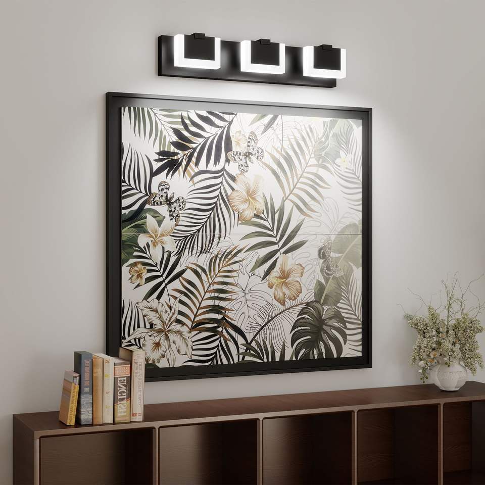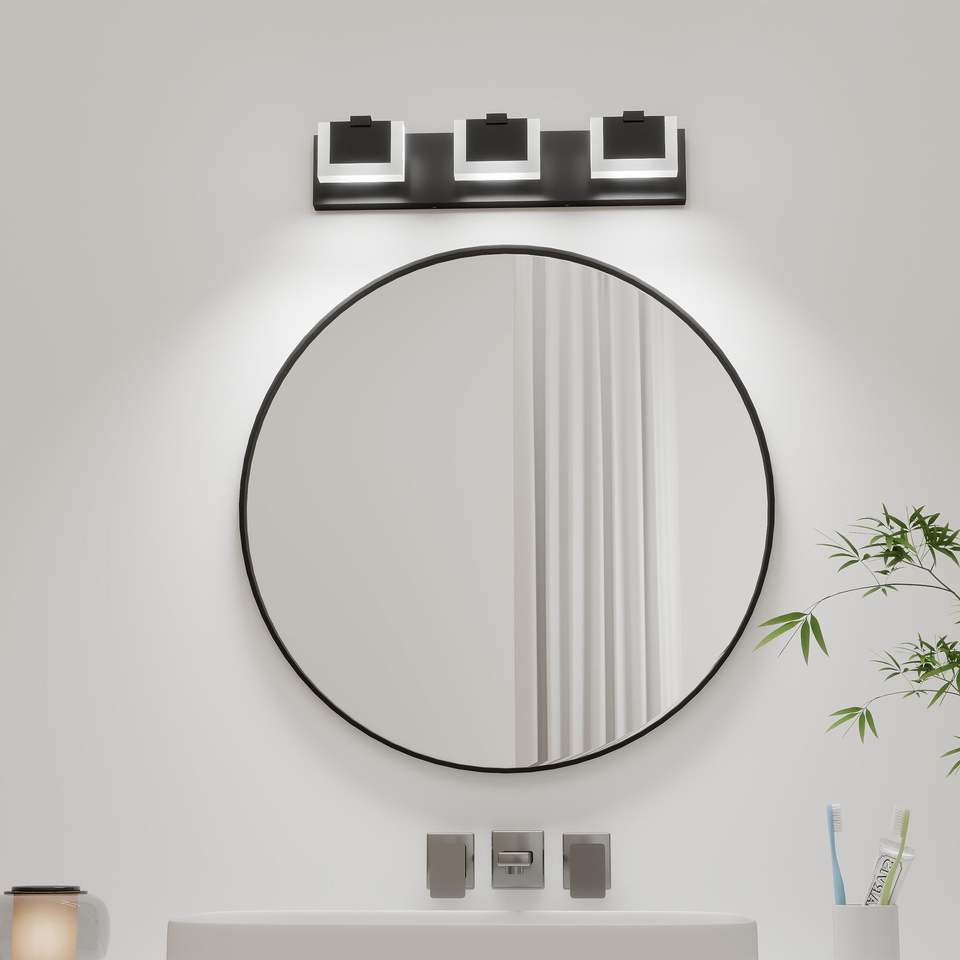 Moderna Lampada da Parete a 3 Luci LED Nera per Bagno, Illuminazione Su e Giù, 6000K, per Specchio