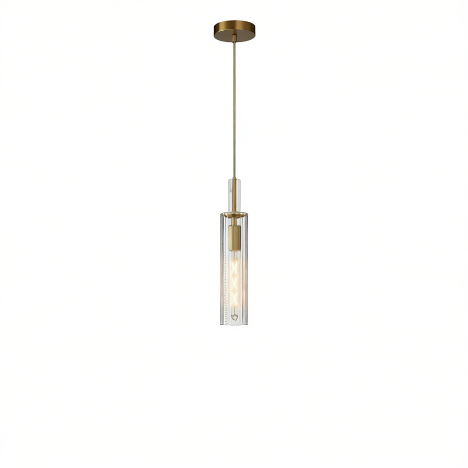 Lampadario Moderno in Ferro Dorato con Paralume in Vetro Trasparente a Strisce, per Isola Cucina, Sala da Pranzo, Stile Rustico, E26 LED 2700K