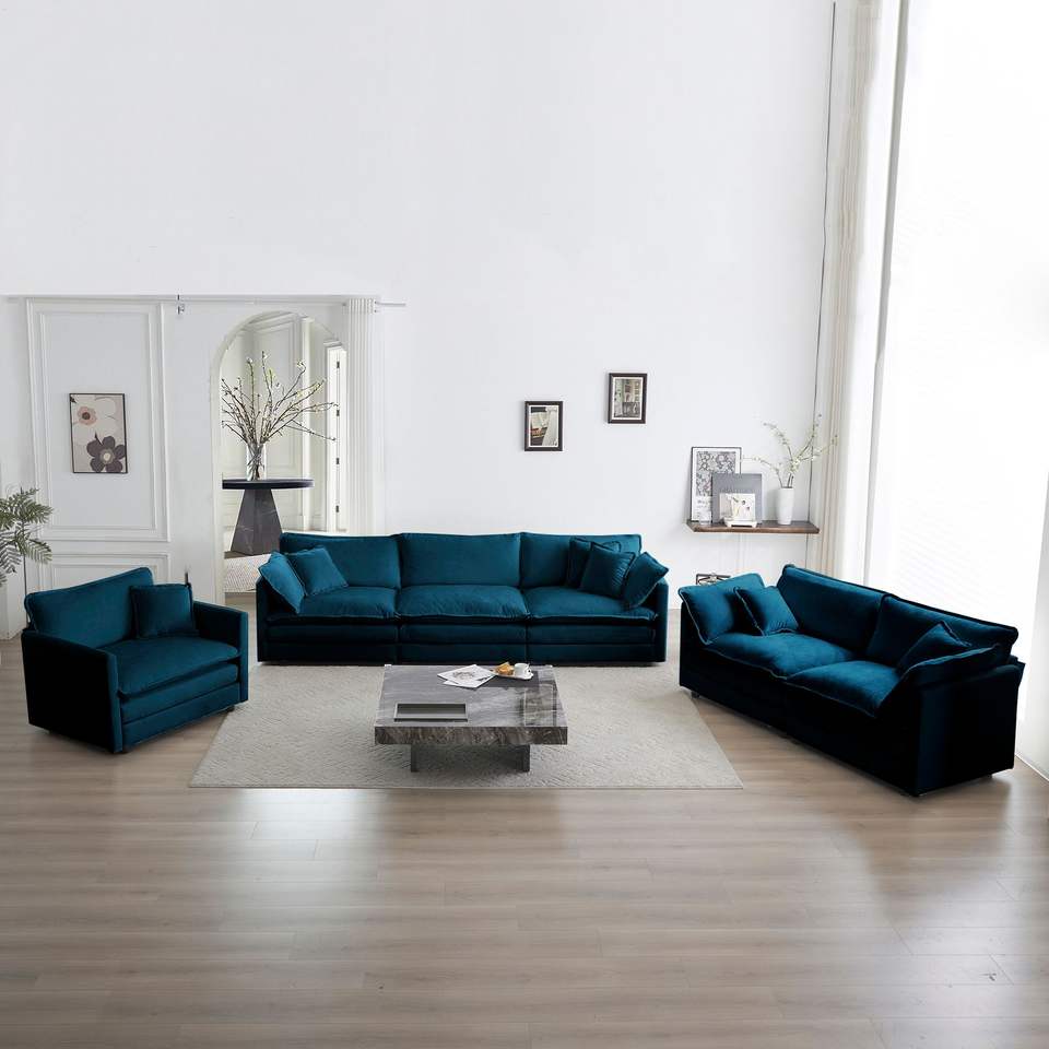 Set di Divani Moderni a 3 Posti per Soggiorno, Seduta Extra Profonda, Divano Componibile con Divanetto e Poltrona Singola