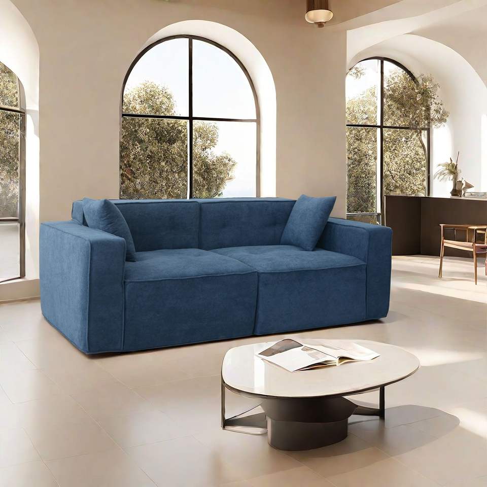 Divano Moderno a 3 Posti in Velluto Teddy con Ampia Profondità di Seduta e Morbido Cuscino in Cotone Poliestere, Imbottitura Completa in Schiuma Compressa