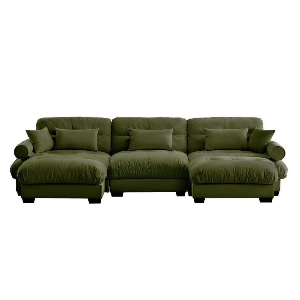 Divano Modulare a U Moderno a 3 Posti con Due Pouf Mobili, Cuscini Lombari e Cuscini Decorativi per Soggiorno