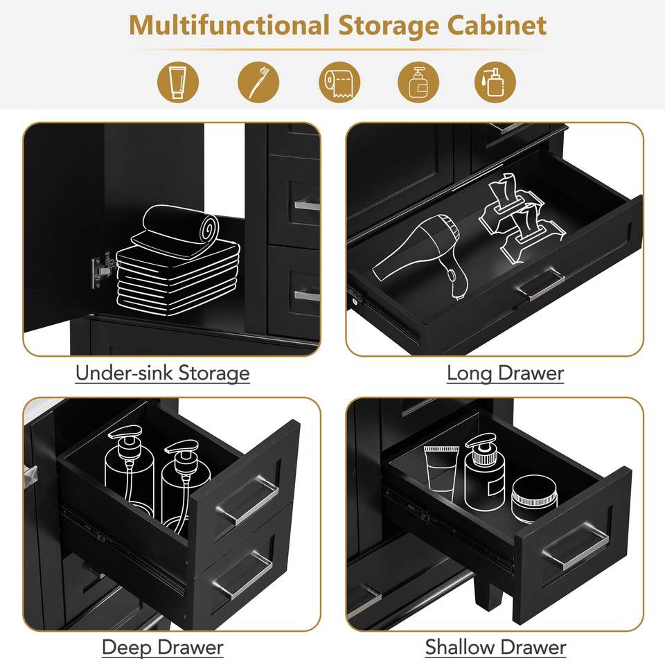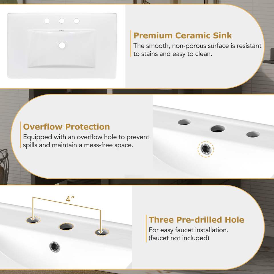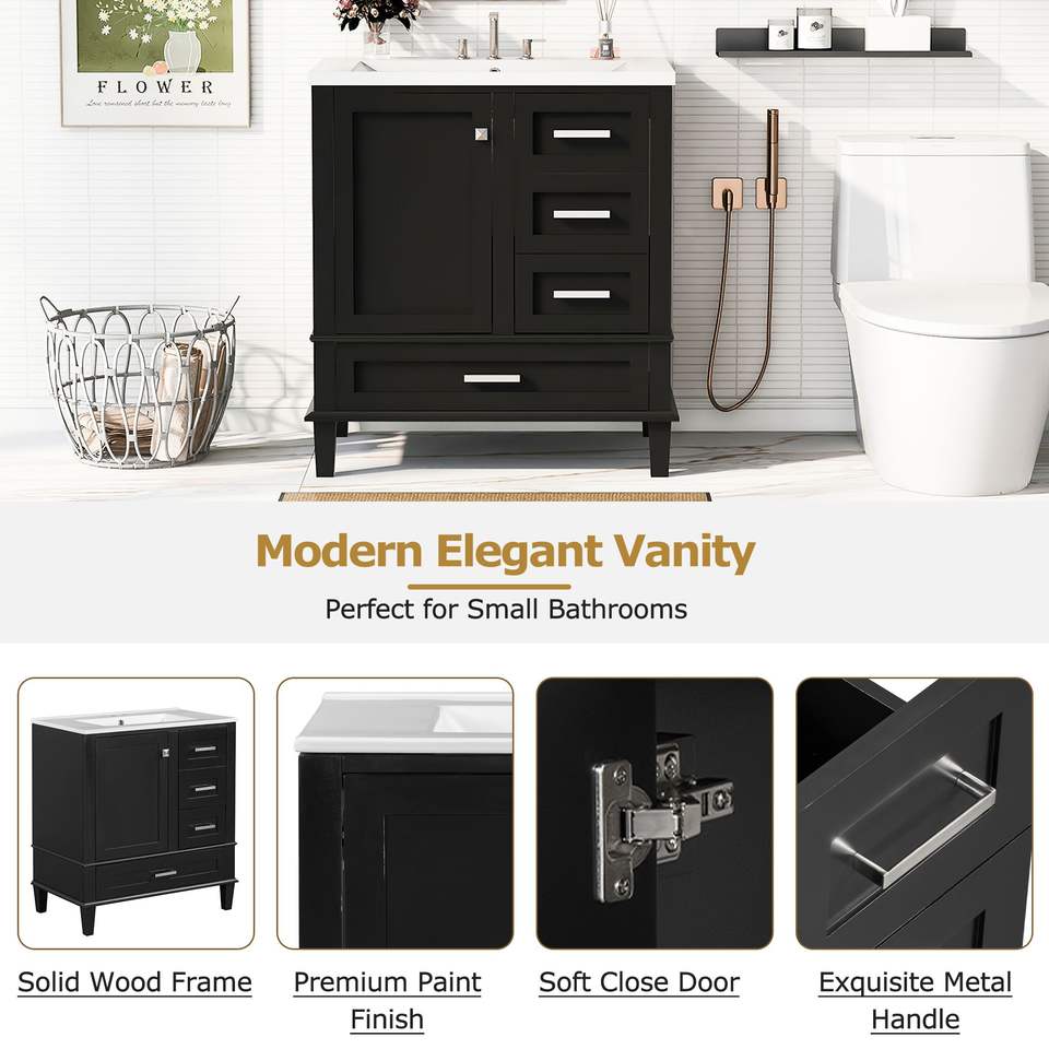 Mobile Bagno Moderno da 30 Pollici con Chiusura Ammortizzata, Armadietto Contenitore e Lavabo Integrato con 3 Cassetti - Stile Urbano