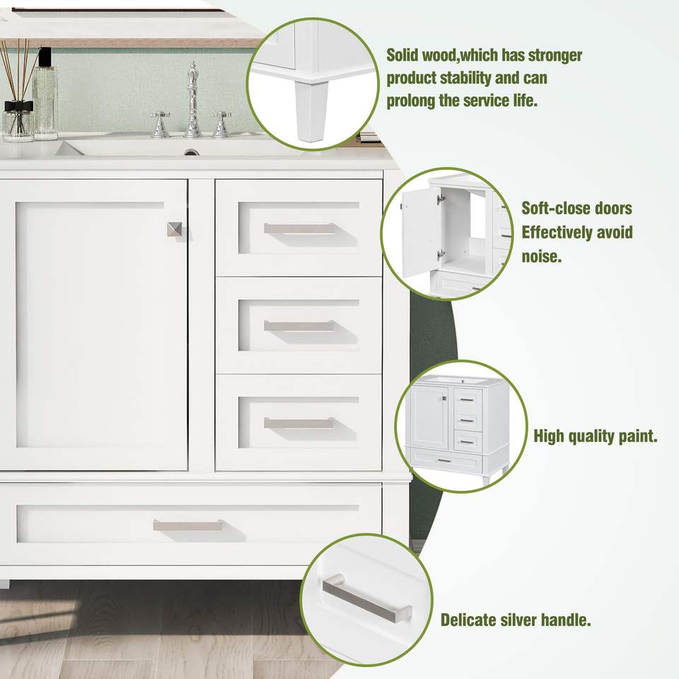 Mobile Bagno Moderno da 30 Pollici con Chiusura Ammortizzata, Armadietto Contenitore e Lavabo Integrato con 3 Cassetti - Stile Urbano