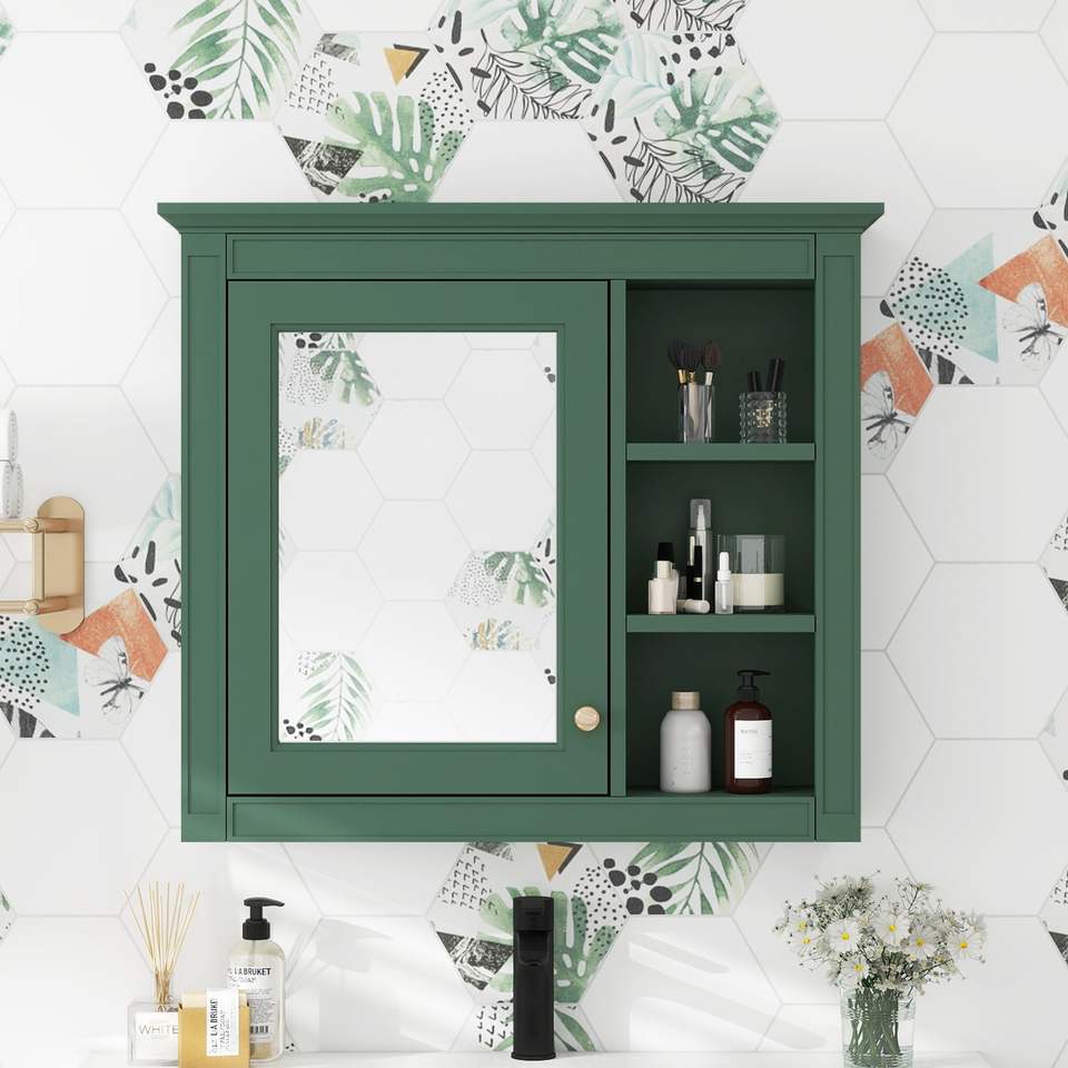 Moderno Armadietto da Bagno a Parete 30 X 28 con Specchio, Mensole Contenitore per Bagno Contemporaneo