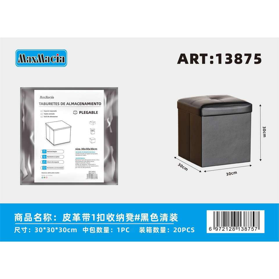 Moderno pouf in pelle nera 30x30x30CM con pulsante rimovibile Design pieghevole per casa camera da letto soggiorno o Hotel