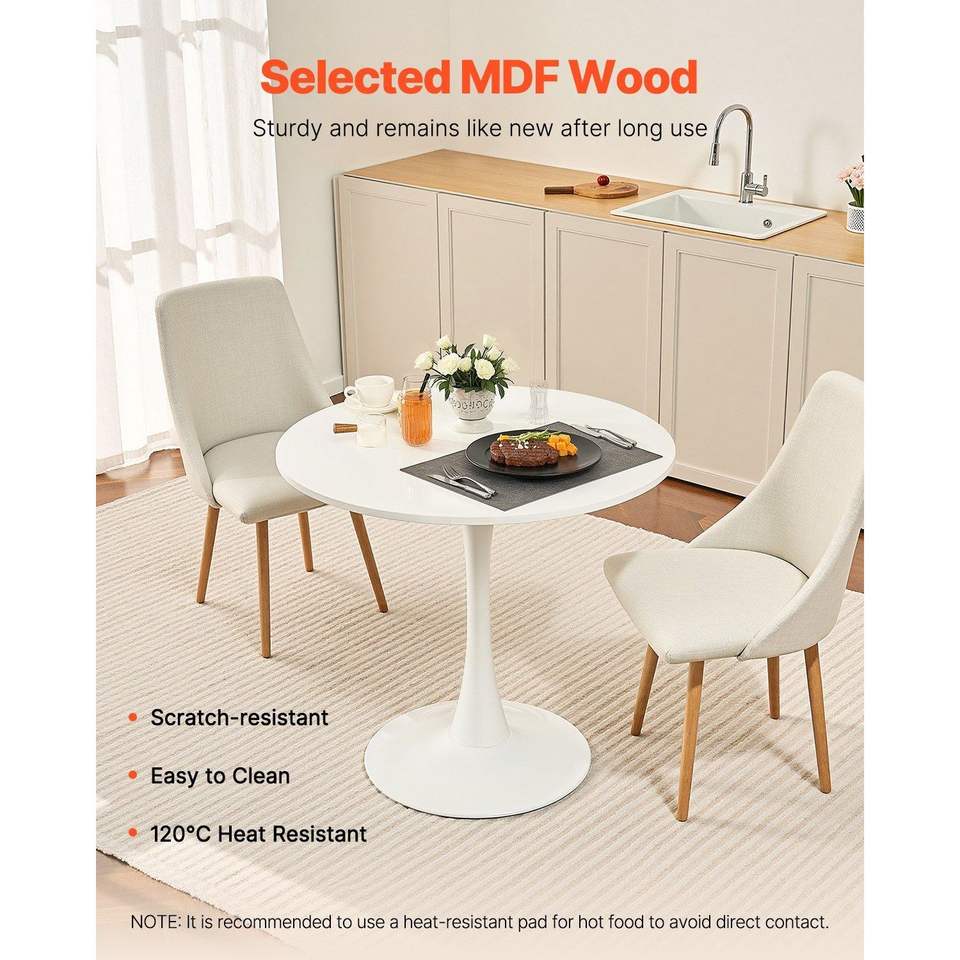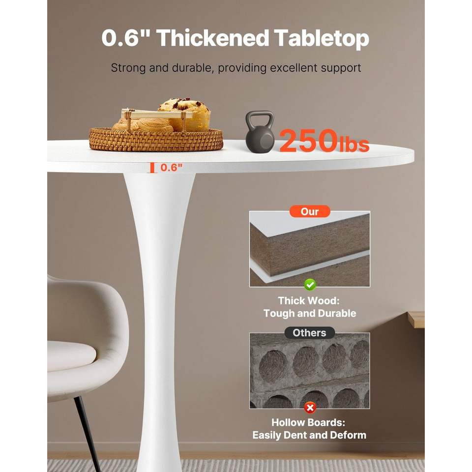 Tavolo da Pranzo Rotondo Moderno in Legno da 80 cm per 2-4 Persone con Base a Piedistallo per Caffè, Ufficio o Tempo Libero