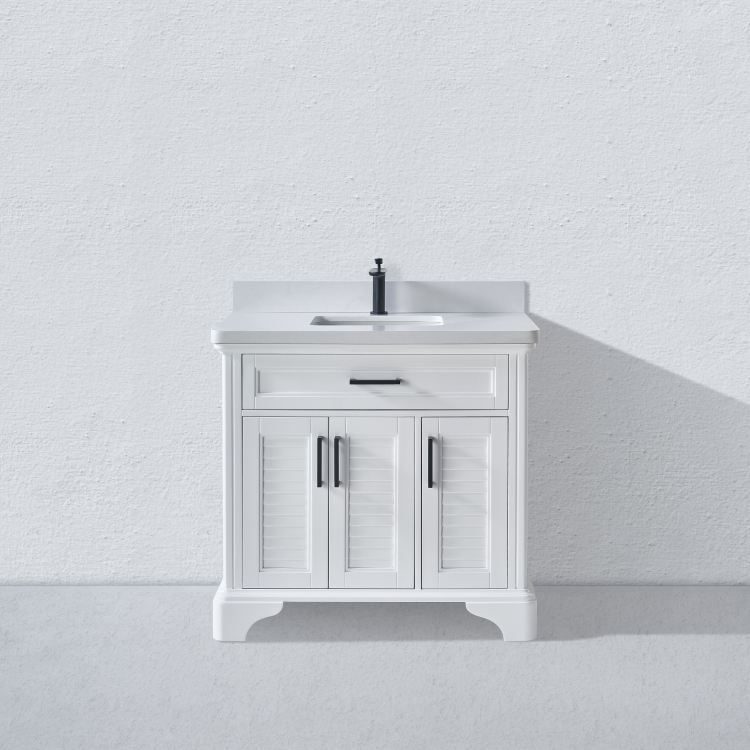 Mobile bagno da 36 pollici moderno con porta Shaker maniglia nera e bordo curvo 36 pollici bagno vanità mobili