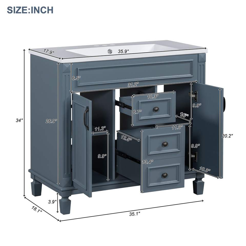 Modern 36-Inch Bathroom Vanity with Single Sink Top 2 Soft Closing Doors and 2 Drawers for Storage-Modern Bathroom Vanities