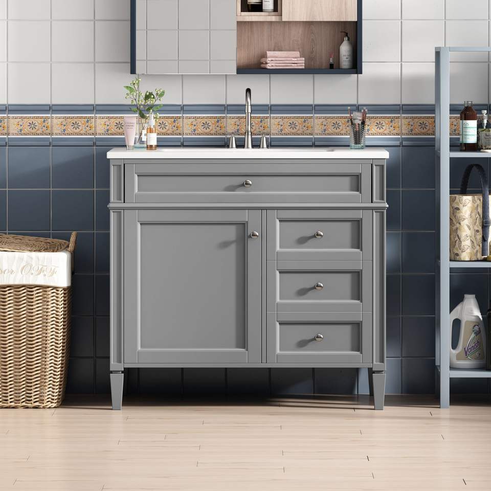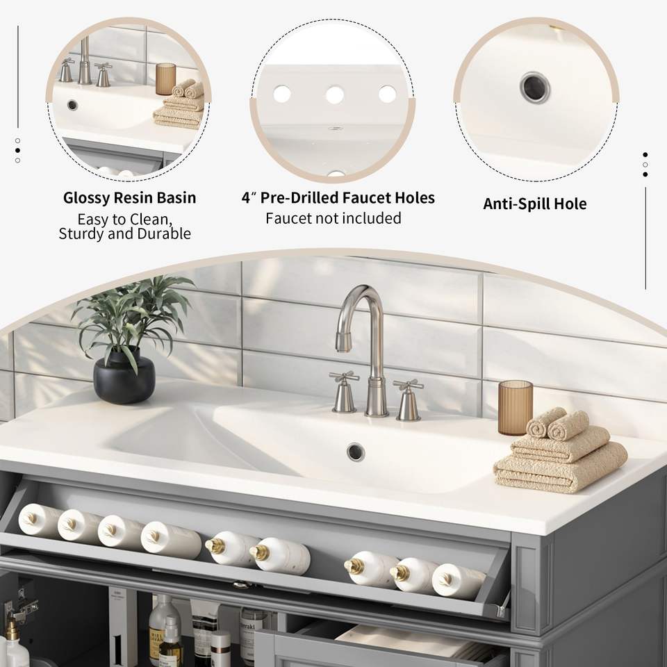 Mobile bagno moderno da 36 pollici con lavabo integrato, 2 cassetti e cassetto estraibile, mobiletto singolo per bagno con lavabo