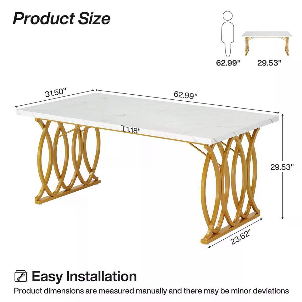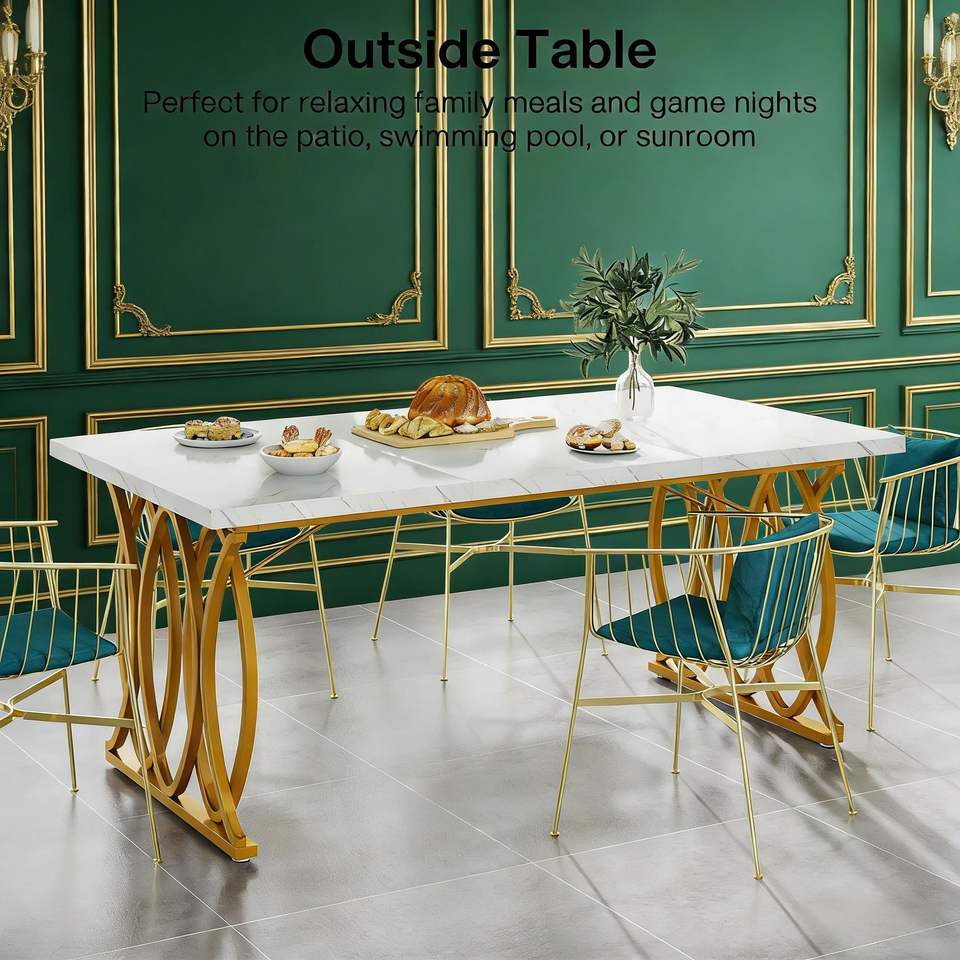 Tavolo da Pranzo Moderno per 4-6 Persone con Elegante Piano in Finto Marmo per un'Esperienza Culinaria Confortevole