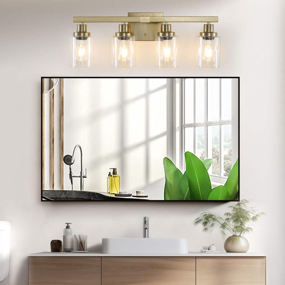 Moderno 4-Light dorato luce di vanità trasparente in vetro tonalità ferro metallo apparecchio da parete per il bagno specchio per la toletta (senza lampadine)