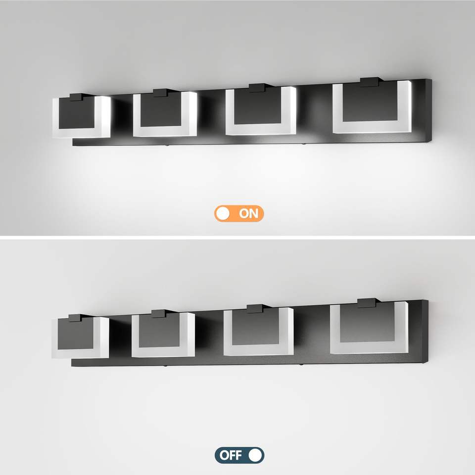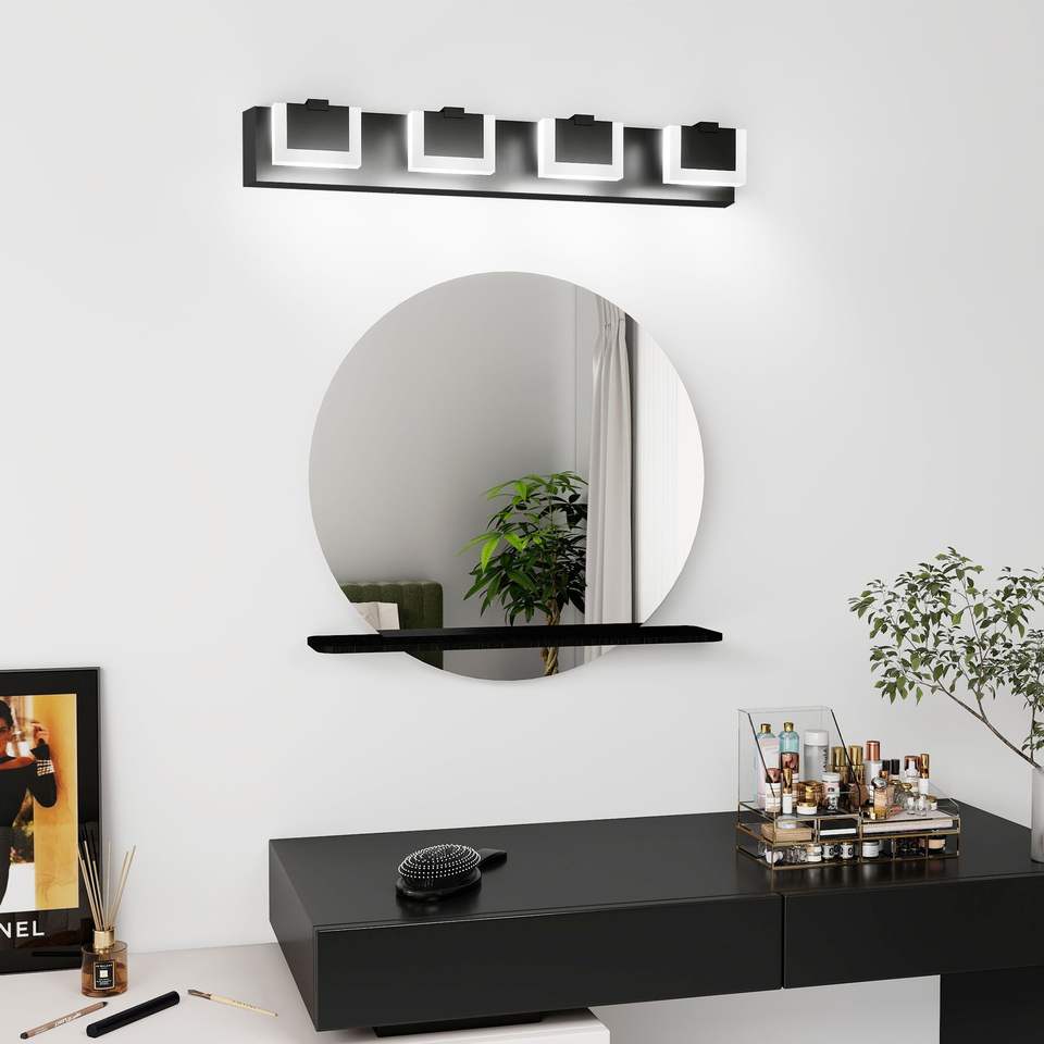 Lampada da Bagno Moderna a 4 Luci LED, Applique Nera con Illuminazione Su e Giù 6000K per Specchio del Bagno