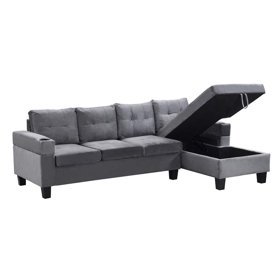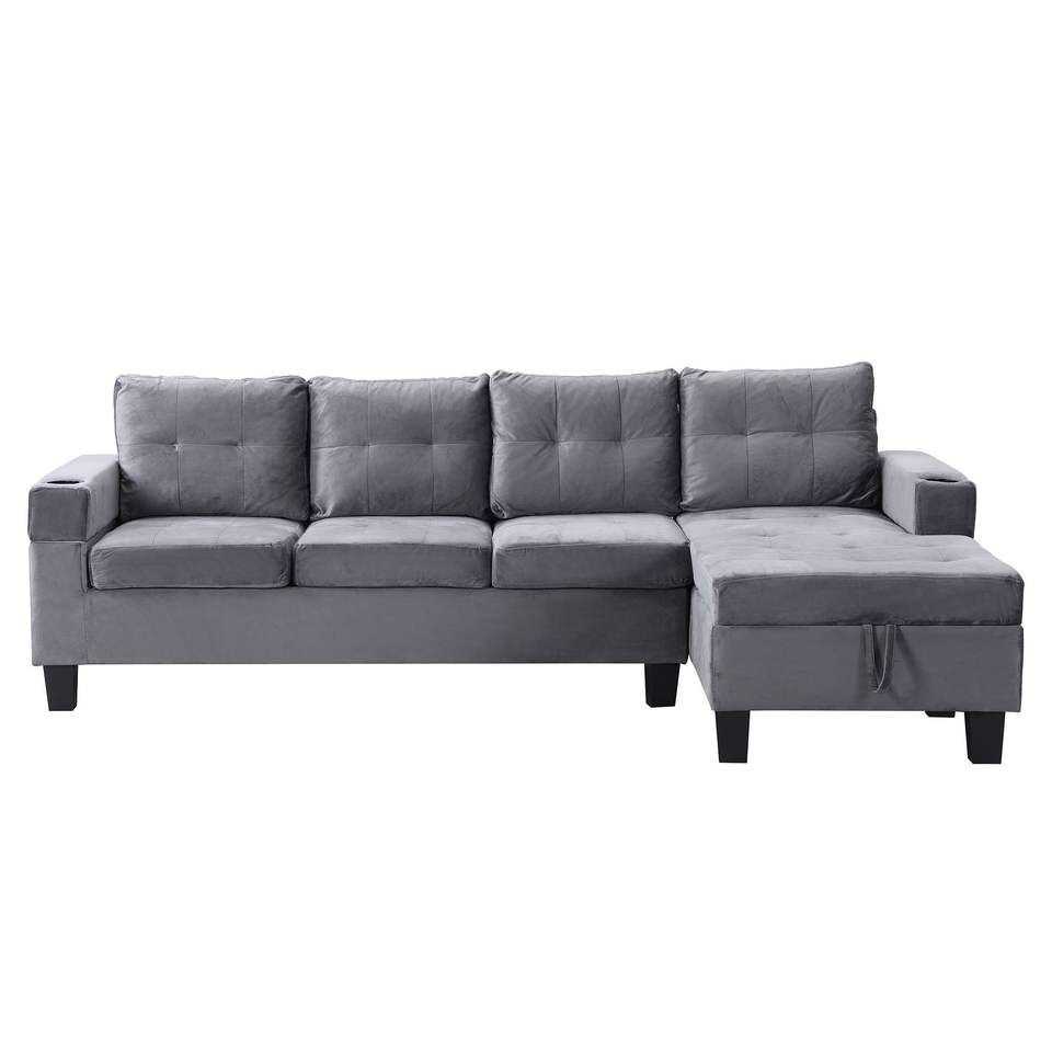 Divano Sezionale Moderno a 4 Posti con Chaise Longue a L, Portaoggetti Destro e Portabicchieri per Soggiorno, Colore Verde