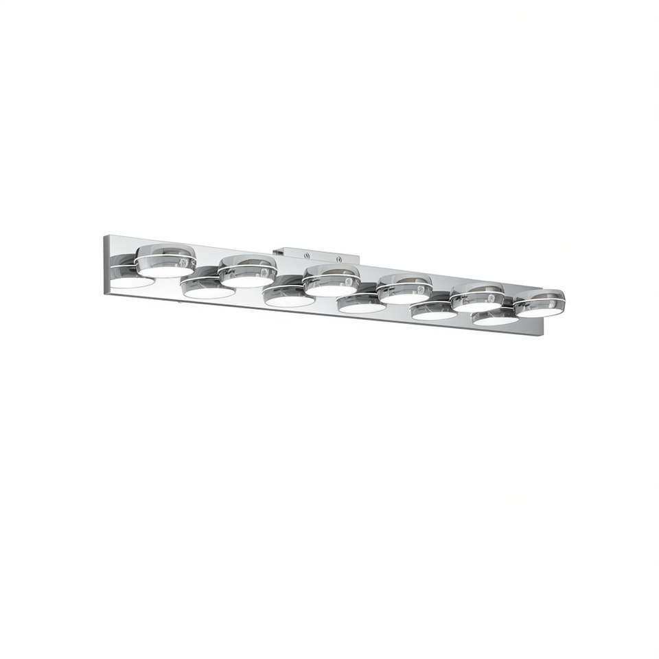 Moderna Barra Luminosa LED da 43 Pollici per Specchio da Bagno, 6 Luci, Finitura Cromata, Montaggio a Superficie, Luce Bianca Calda 3500K, IP44