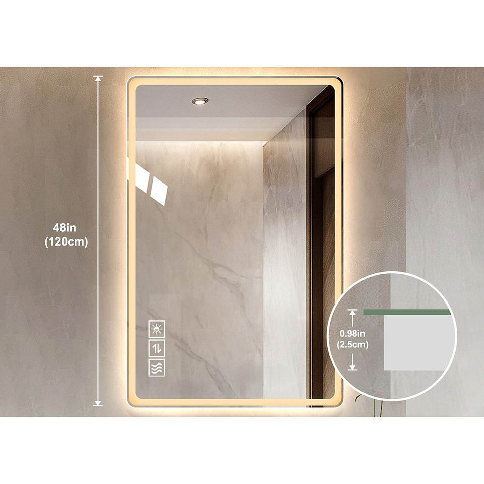 Specchio da Bagno Moderno Senza Cornice 48*32 Pollici con Luci LED, Quadrato, Interruttore Touch Regolabile per Parete, Trucco e Hotel